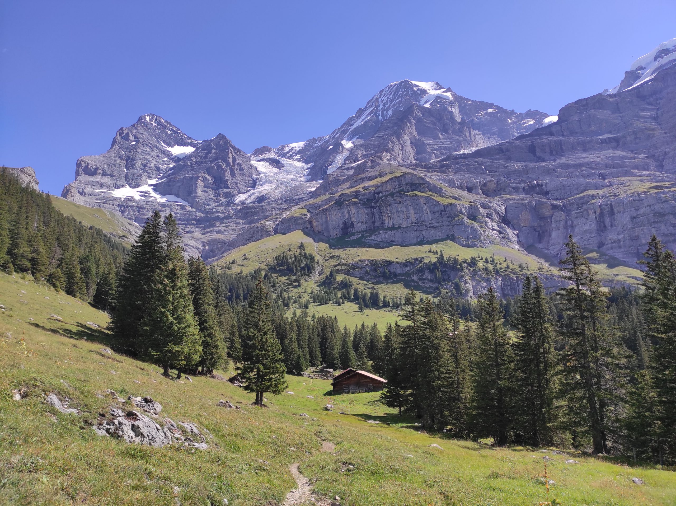 The last part of the trail is in the pine forest, which is great during hot days. Feel the pine fragrance before you arrive in Wengen. Here, we will do a small walk to see the car free village before we go back on the mountain, making our way to Grindelwald. The views over Lauterbrunnen valley are stunning. We will have the opportunity to take the last pictures before we take a 20 minutes cable car back to Grindelwald.