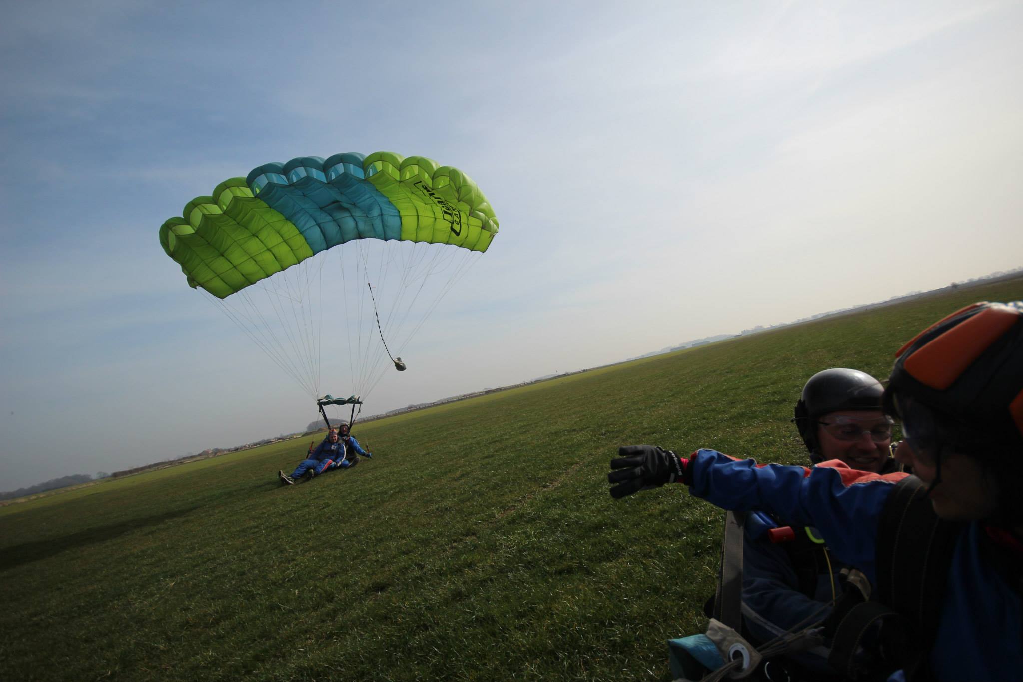 He gave a “ready, set, go” and out we went. Within I few seconds he gave me a tap on the shoulders and I adopted the basic freefall body position. It wasn’t anything like I expected, it was a gentle floating sensation, but very very windy! I quickly realised it was an enjoyable experience and smiled to the cameraman enthusiastically. Snapping away with his camera, we spiralled around and I got a wonderful look at the Lincolnshire countryside falling at 120mph.