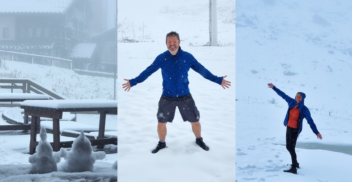 Inside the restaurant we ordered mulled wine and, as I glanced out the window at the small snowman I’d made, I felt slightly discombobulated. Six days earlier we had arrived into Geneva in sultry 30 degrees heat and here we were leaving in the snow. Our alpine summer adventure had certainly been a trip of contrasts and adventure.